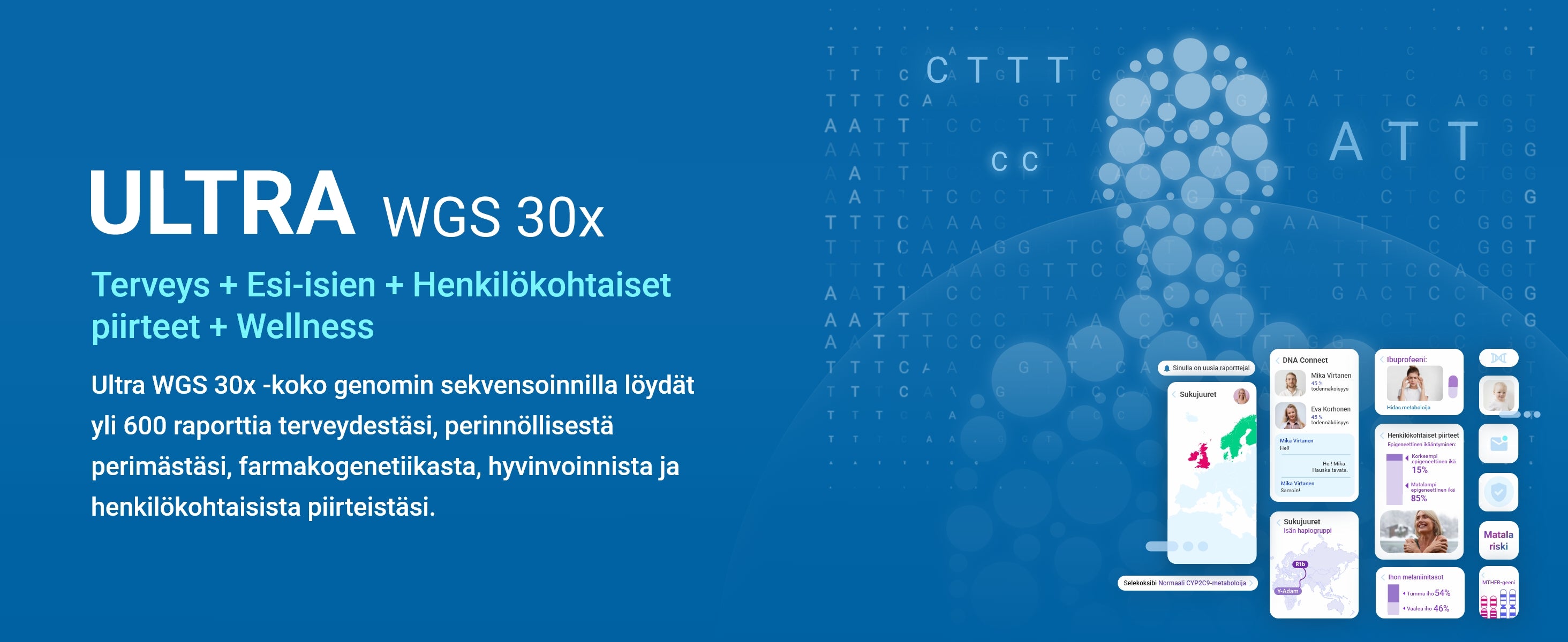 Hanki Ultra-genetiikan analyysisi (WGS -30x), UL, saadaksesi kaiken tiedon, mitä geenisi voivat kertoa sinulle.