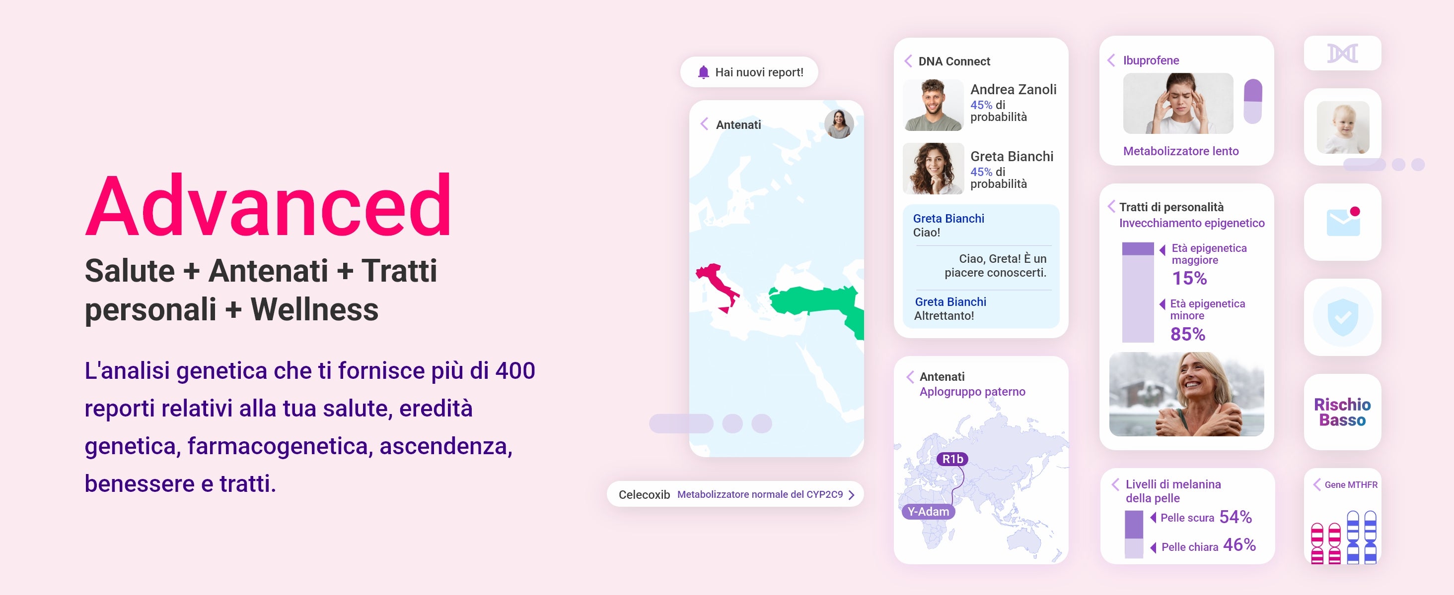 - Prevenire e migliorare la tua salute: identifica i rischi genetici e prendi misure preventive per proteggere il tuo benessere.