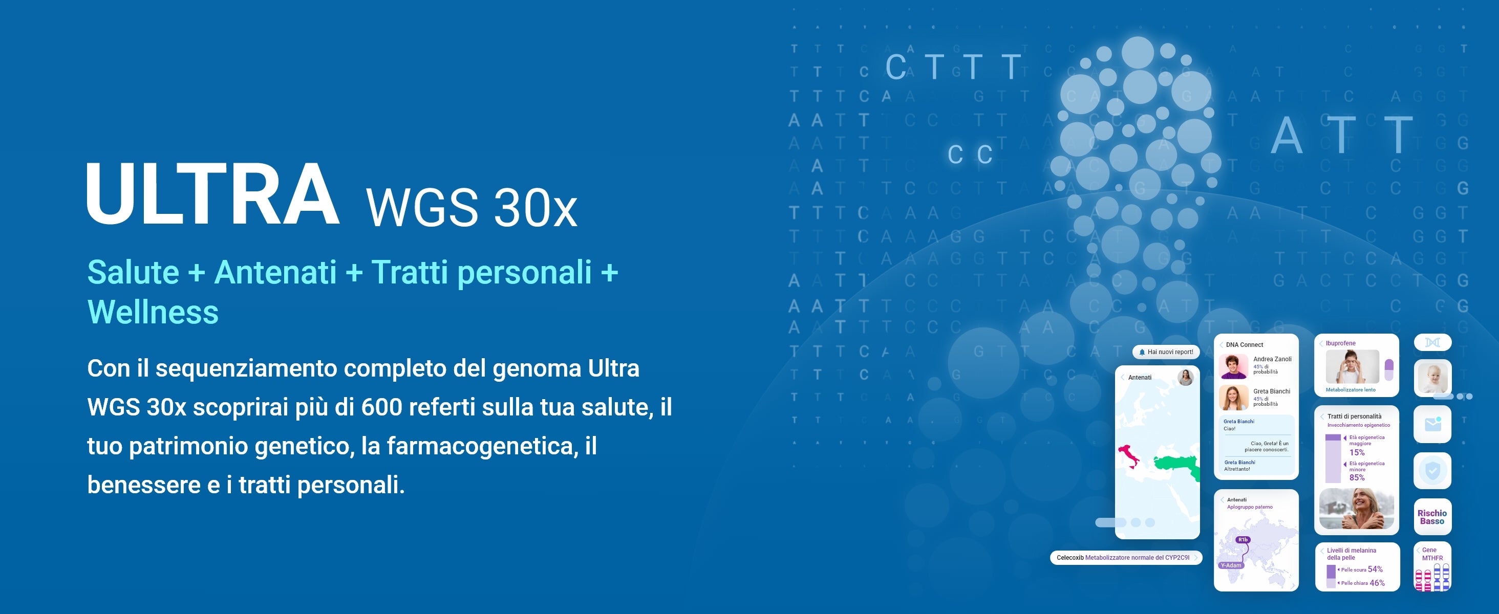 Acquista la tua analisi genetica Ultra (WGS -30x), UL, per ottenere tutte le informazioni che i tuoi geni hanno da dirti.