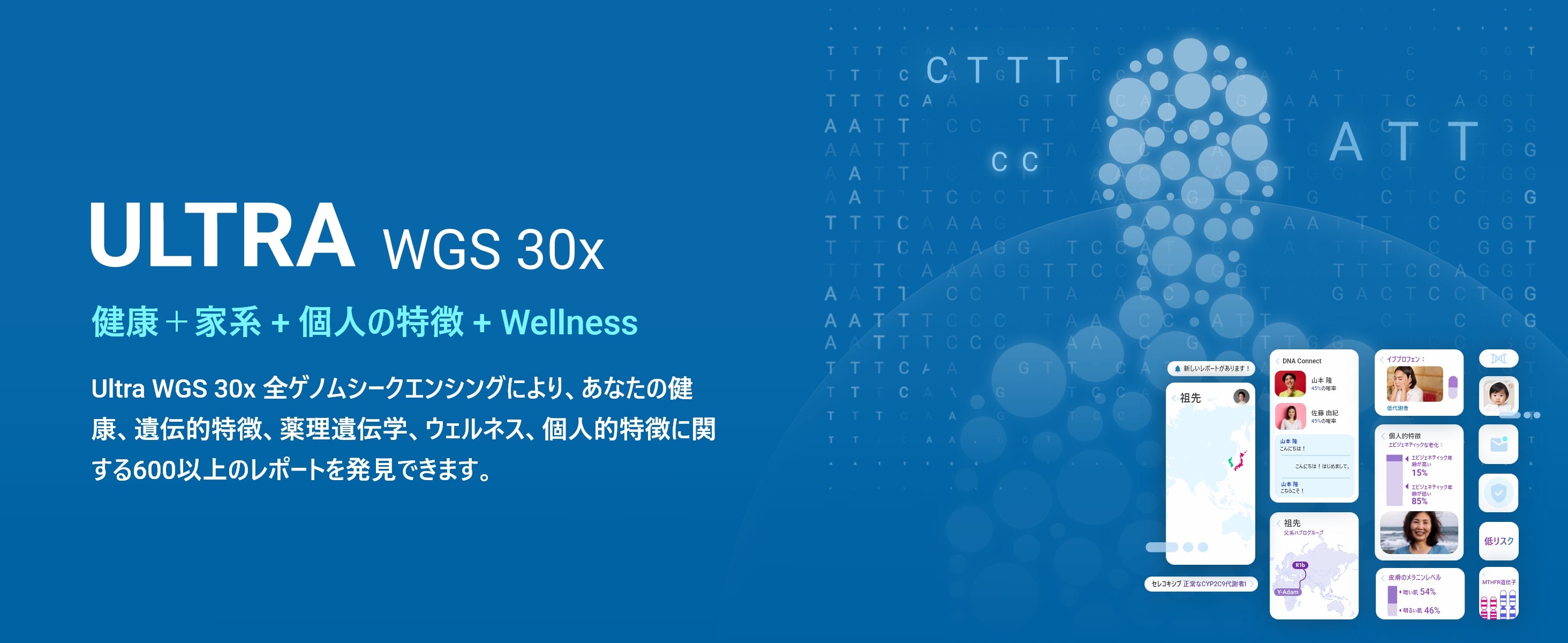 あなたの遺伝子が教えてくれるすべての情報を得るために、Ultra遺伝子解析(WGS -30x)、ULを取得してください。