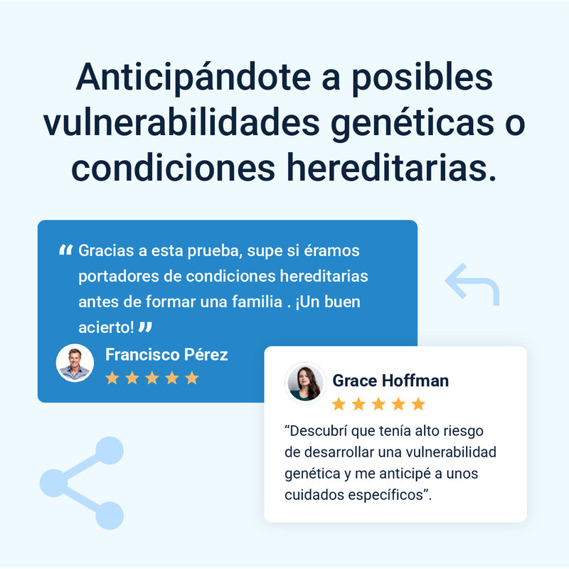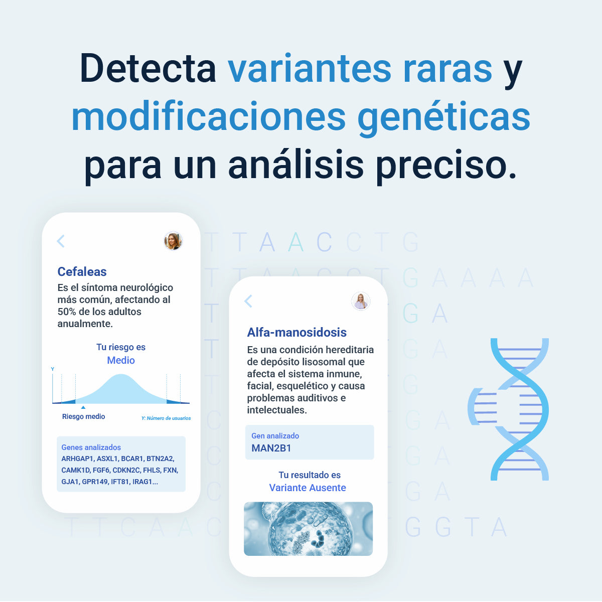 Genetyczna analiza dobrostanu: uzyskasz dane dotyczące odżywiania, takie jak nietolerancja laktozy, poziom witamin i cholesterolu, celiakia, a także sposób, w jaki metabolizujesz inne substancje, na które jesteś narażony/a w codziennym życiu. Dodatkowo otrzymasz również istotne informacje dotyczące sportu, takie jak wydajność, regeneracja mięśni, tendinopatie, wskaźnik masy ciała i wiele więcej. Dodajemy nowe i wyłączne geny z analizy UL, a także warianty strukturalne.