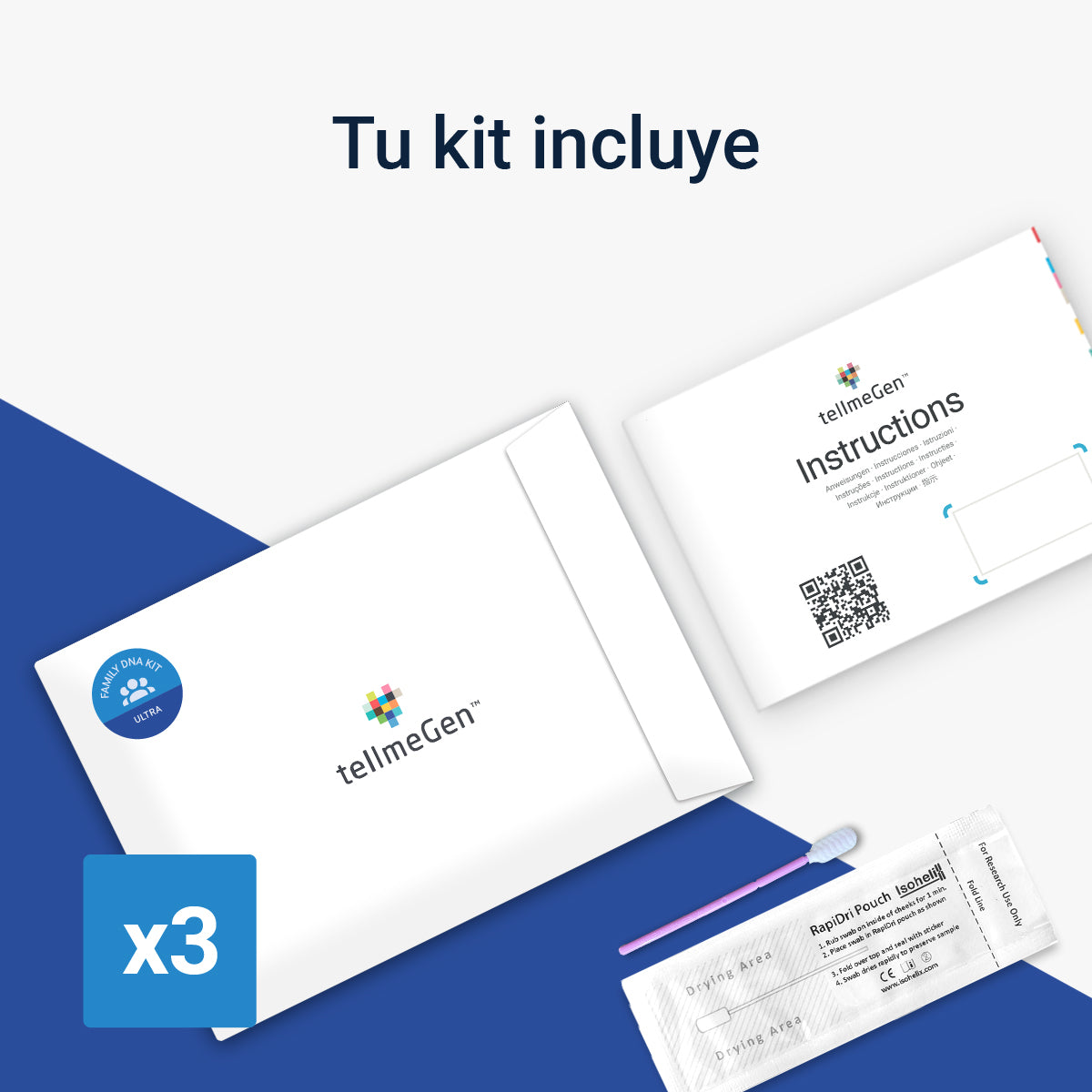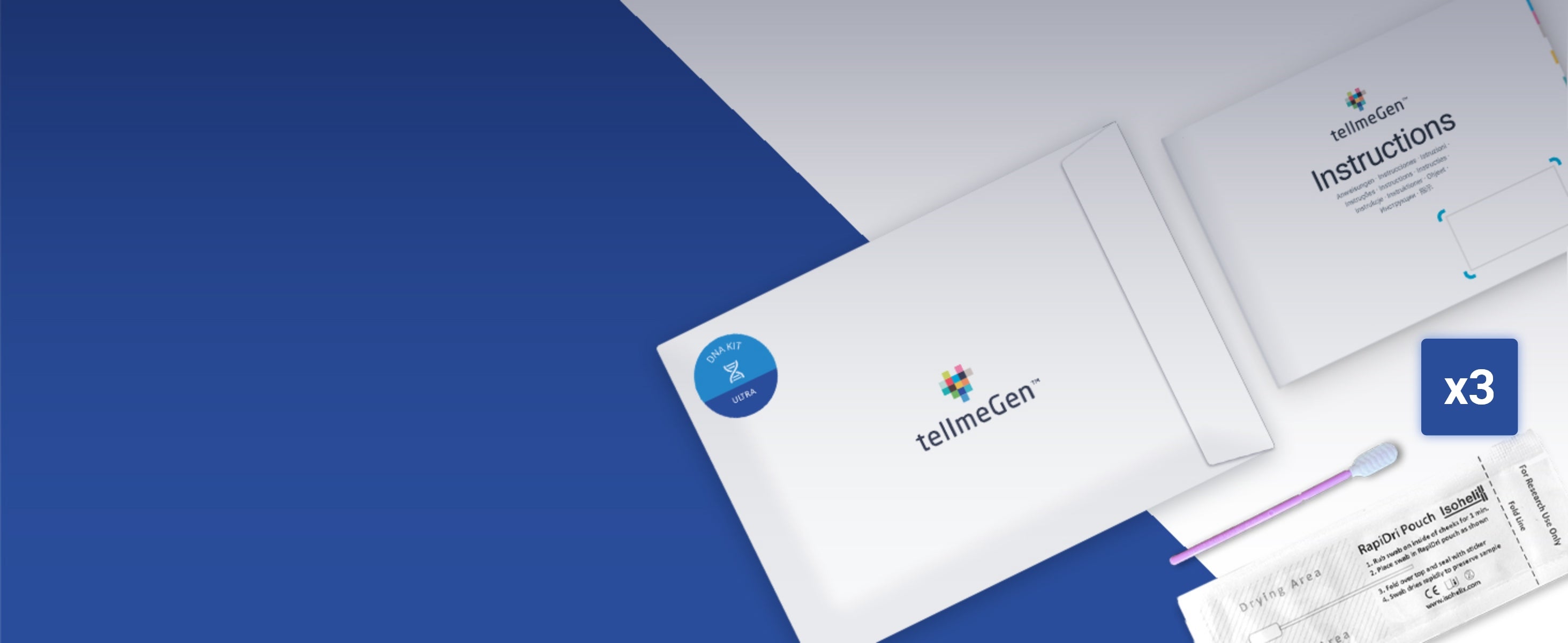 Zdobądź swoją analizę genetyczną Ultra Family, aby otrzymać 3 zestawy w jednej paczce.