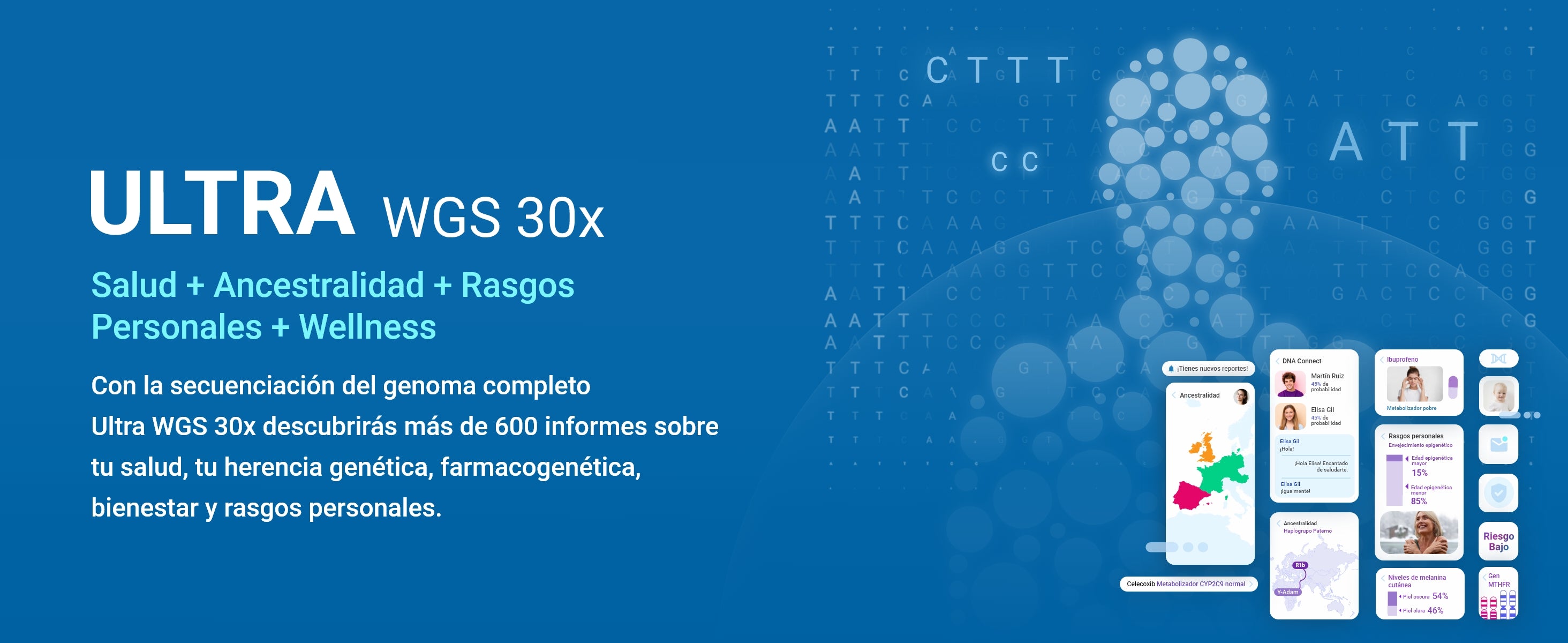 Adquiere tu análisis genético Ultra (WGS -30x), UL, para obtener toda la información que tus genes tienen que decirte.