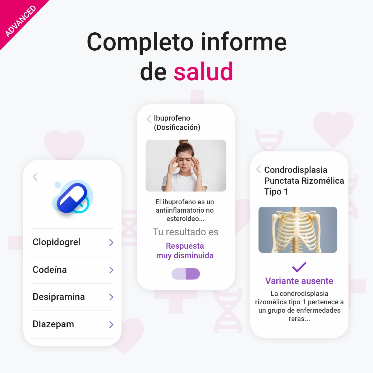 Получите подробную информацию о том, как ваша генетика влияет на ключевые аспекты вашего питания, такие как обмен веществ и реакция на различные вещества. Кроме того, анализируйте, как это влияет на вашу физическую форму и восстановление, помогая вам персонализировать физическую активность. В общей сложности вы получите более 50 отчетов, связанных с вашим благополучием и физической производительностью.